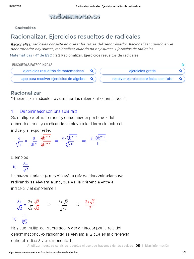 Ejercicios De Racionalizacion De Denominadores